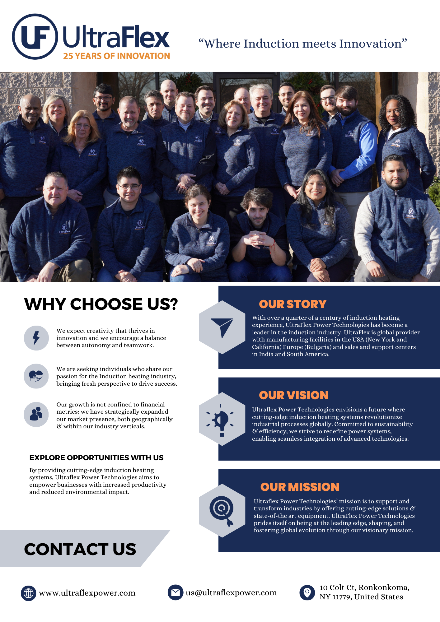UltraFlex Power Technologies is a growing, dynamic and innovative company committed to design, development, and manufacturing of innovative induction heating and casting equipment. We pride ourselves on being a leader in the induction heating technology field.