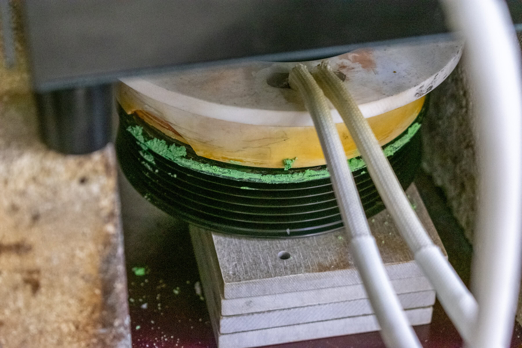 For this induction heating application test, we have to bond a steel detail to a non-conductive ring. The steel part must be heated in order to cure the adhesive and bond a gasket to the steel part. The components are magnetic and are parts from rotary vane pumps.